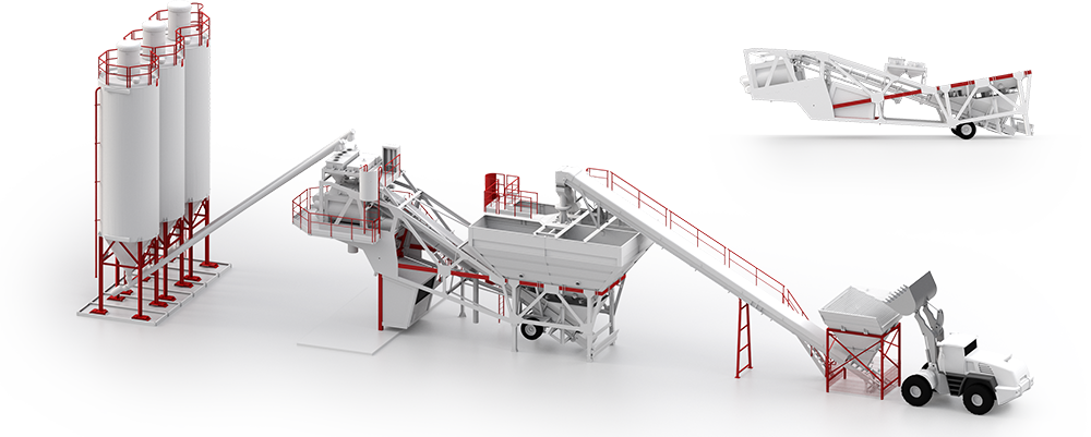 Ten mobilny węzeł betoniarski posiada przenośną konstrukcję ramy nośnej dzięki czemu jest łatwy w montażu oraz transporcie. Jego zaletą jest wysoka precyzja dozowania składników dzięki czemu produkty końcowe posiadają stale niezmienny skład.
